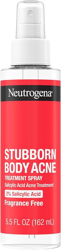 Clear skin and help prevent stubborn acne and future breakouts with Neutrogena Stubborn Body Acne Treatment Spray formulated with Salicylic Acid. This acne treatment is formulated with BHA. This acne body spray from a dermatologist-recommended brand penetrates pores to treat and help prevent blemishes, pimples, and other breakouts on your back and chest with 2% salicylic acid, a proven acne-fighting ingredient. This dermatologist tested and recognized ingredient also treats and helps prevent future breakouts. A great addition to your daily skin care routine, the fragrance-free acne spray treatment is suitable for all skin tones and can be used up to three times per day. In 1 week, acne looks visibly improved and calm. See reduced appearance of redness with this acne treatment spray for clearer looking skin. The easy-to-use acne spray is perfect for hard-to-reach areas of the body. To use, cleanse skin and cover the affected area with a thin layer of spray, which can be used upside down.