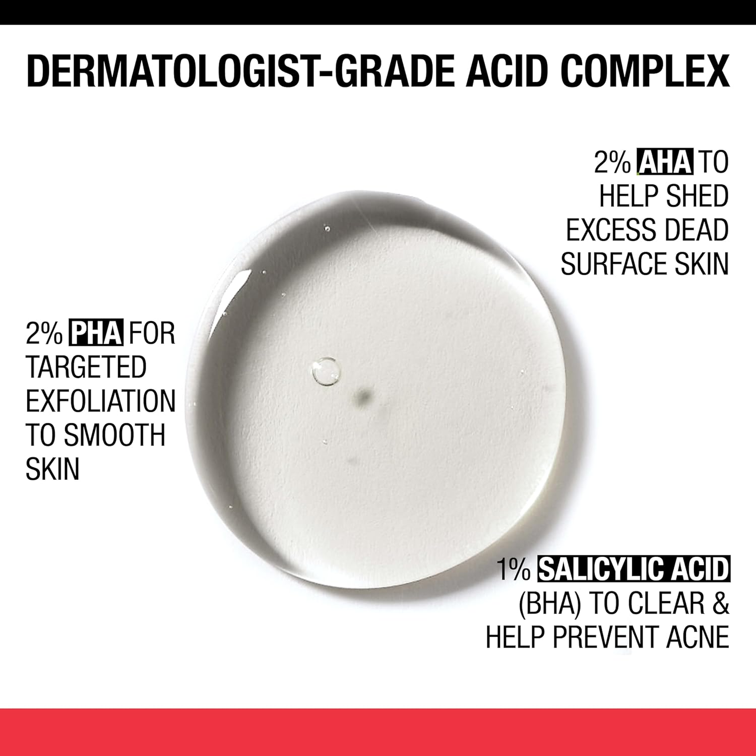 Help clear skin from stubborn acne and visibly smooth uneven texture with Neutrogena Stubborn Texture Daily Acne Facial Cleanser. Designed for acne-prone skin, this scientifically proven acne face wash with a dermatologist grade acid complex, including 1% salicylic acid (BHA), clears stubborn acne and helps prevent breakouts. The oil-free acne facial cleanser from a dermatologist recommended brand also contains 2% glycolic acid (AHA) to help loosen and shed excess dead surface skin, and 2% polyhydroxy acid (PHA) for targeted exfoliation to clear and smooth skin. The acne face wash is made from scientifically proven ingredients and is free of fragrance, parabens, phthalates, dyes, oil and sulfates. To prevent pimples and breakouts, use this acne face cleanser twice daily as part of your skincare routine. Wet face, lather cleanser in hands, and then massage into skin for 60 seconds before rinsing.