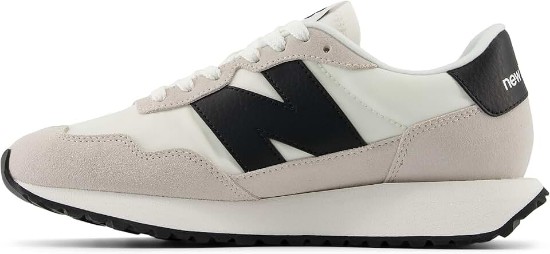 The running shoes of the 1970s might best be described as deceptively simple. While lacking the visible technology and aggressive design of later years, the innovations of the ‘70s would lay the foundation for modern performance. The 237 is a contemporary reinterpretation of ‘70s running heritage that melds a range of heritage design inspirations into one deceptively simple, exceptionally versatile, contemporary silhouette. An EVA midsole, herringbone outsole and streamlined upper offer a classic launching point for modern flourishes like oversized N branding, extended midsole length, and gator inspired foxing and mudguard. You could call the cohesion of the 237’s familiar feel and exaggerated updates the simplest way to make a statement.