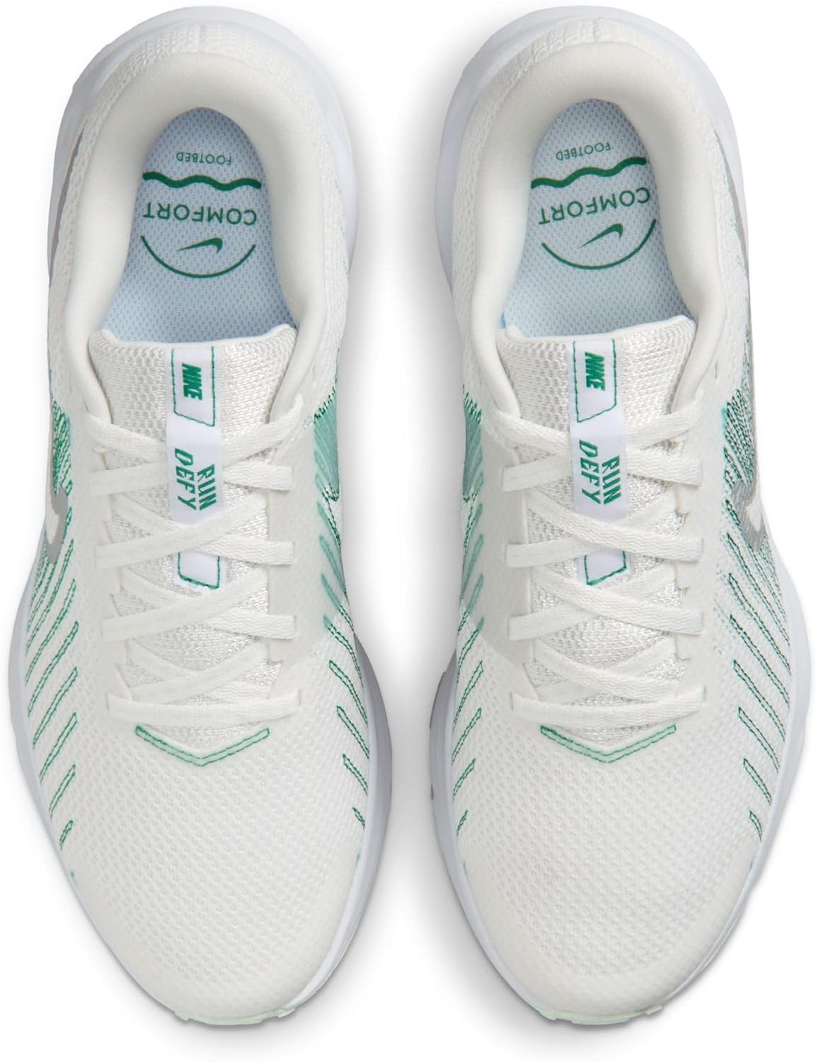 Nike Run Defy Women's Road Running Shoes (Summit White/White/Malachite/Metallic Silver)