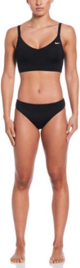 This Nike Swim Effortless Essential V Neck Midkini offers medium support that gives you a snug feeling and keeps you supported through all-day water activities. Built in shelf bra provides comfortable support, adjustable straps and comfort, durable, chlorine resitant frabric, removable cups.