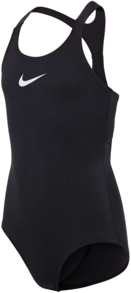 Have her beach or pool ready in no time with the Nike Kids Essential Racerback One-Piece. This bathing suit is crafted with fixed racerback straps, cutout at the back and signature swoosh logo at the front to give her swim time a trendy finish.