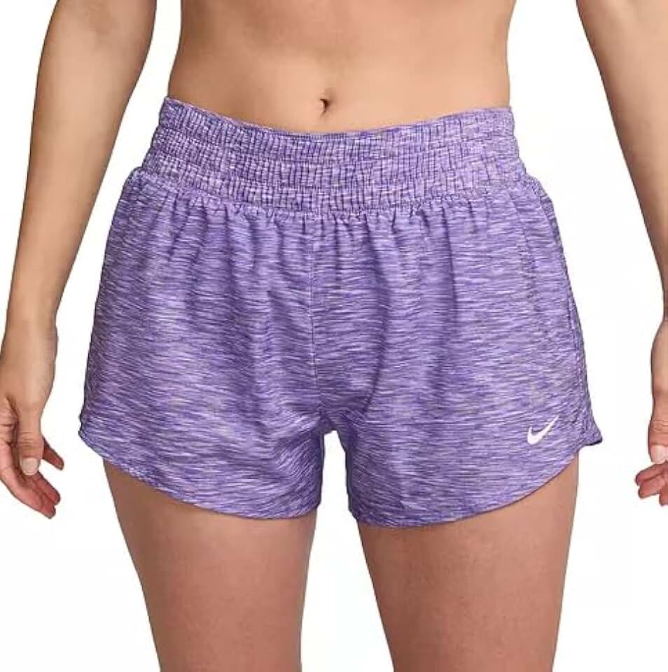 Nike Women's One Dri-FIT Mid-Rise 3" Loose Fit Brief-Lined Training/Running Athletic Shorts, Black Raspberry Purple