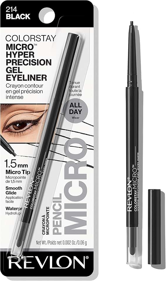 REVLON Gel Eyeliner, ColorStay Micro Hyper Precision Eye Makeup with Built-in Smudger, Waterproof, Longwearing with Micro Precision Tip, 214 Black, 0.002 oz
