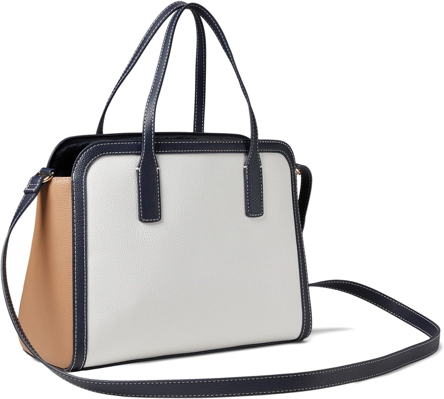 Tommy Hilfiger Liv II Convertible Satchel Color-Block Pebble PVC White Greige/Basket Brown/Tommy Navy One Size