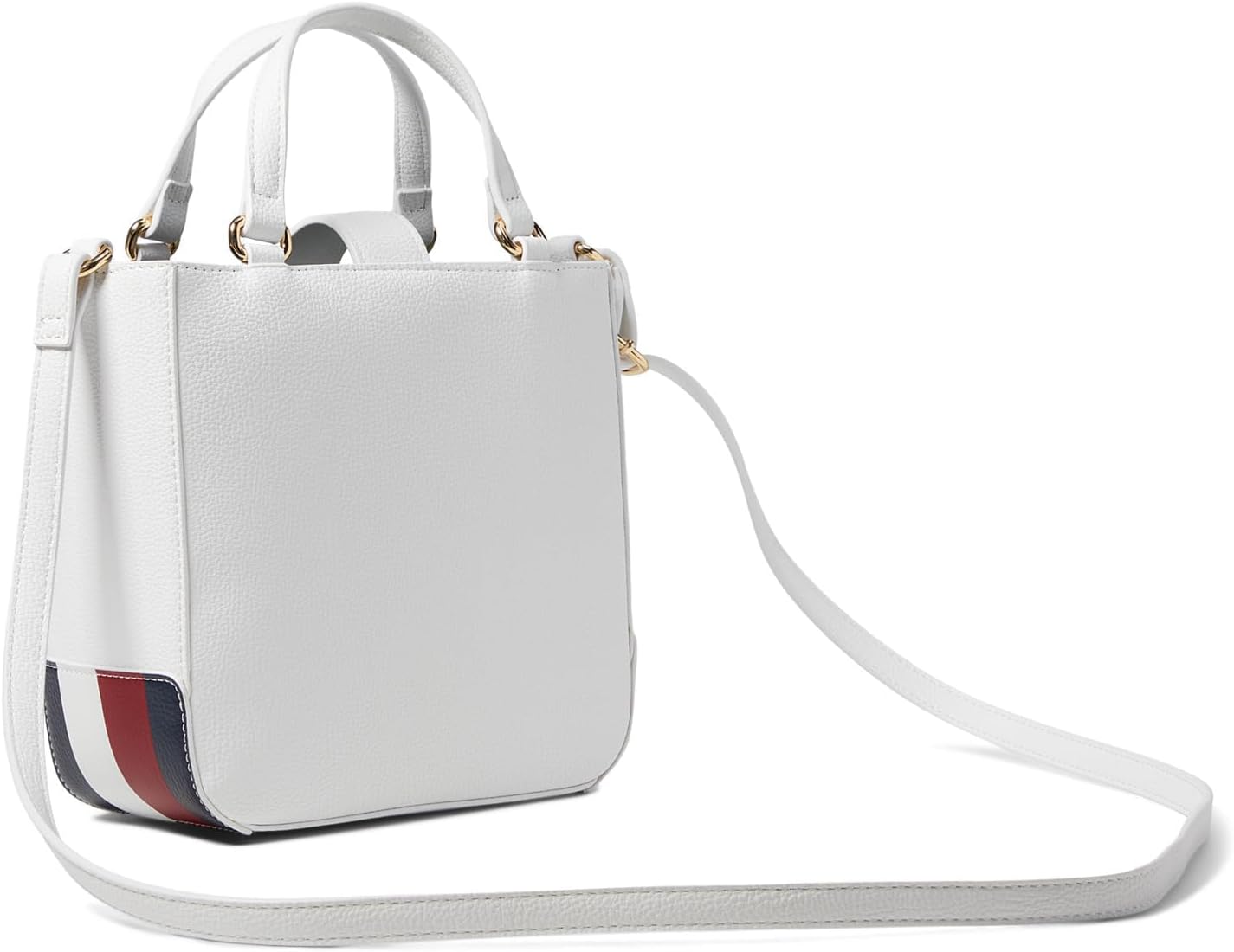 Add elegance to your look by carrying Tommy Hilfiger Dawn II Micro Crossbody Bag that comes in a lightweight construction with spacious compartments for storage. The crossbody bag features one exterior pocket, two interior pockets, two internal compartments, a magnetic closure, two top grab handls, and an adjustable crossbody strap. Polyurethane pebble construction. Brand logo detail on the front. Nylon lining.