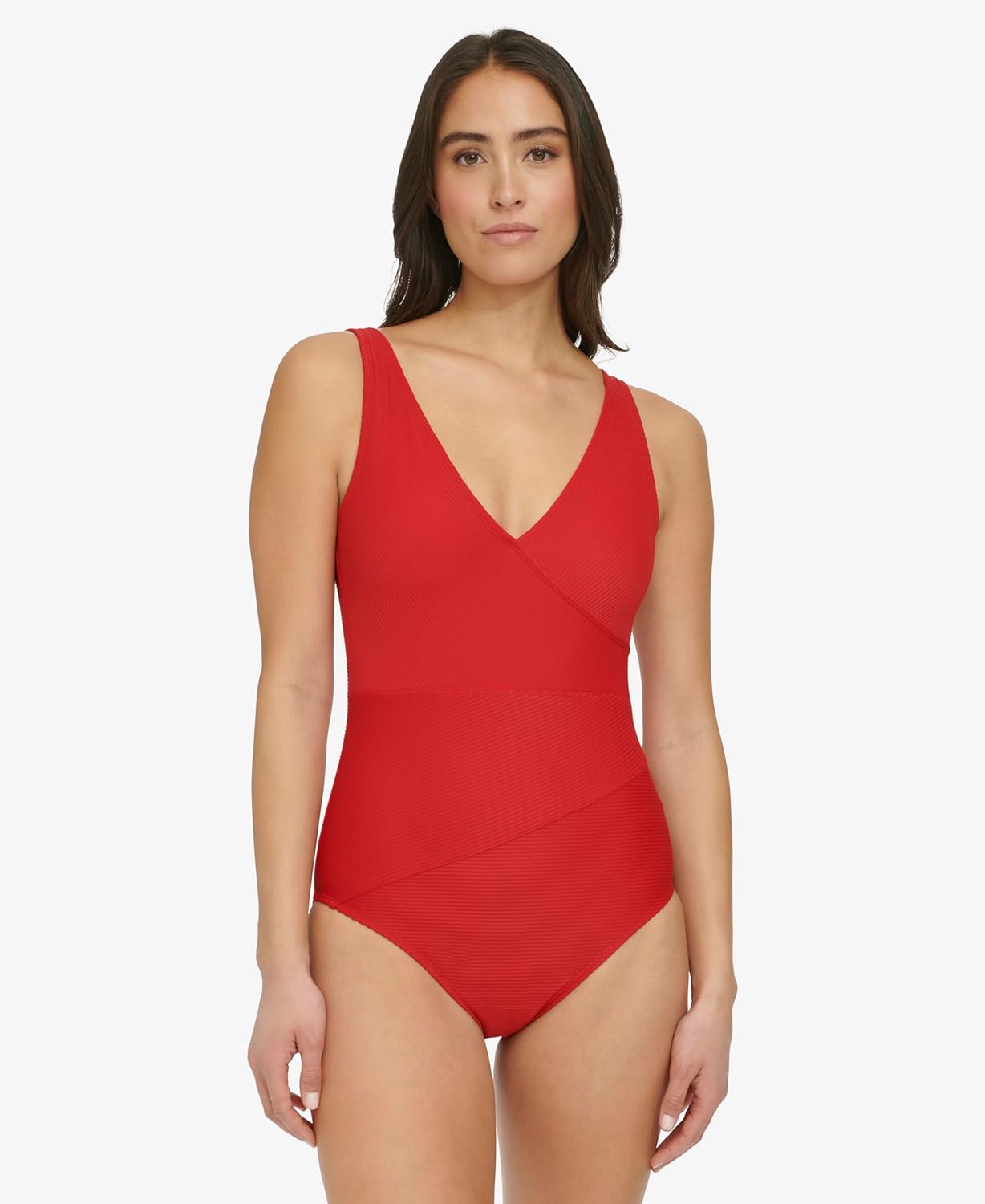 Features: one piece, wrapped, over the shoulder, everyday basic, full coverage, one piece swim suit