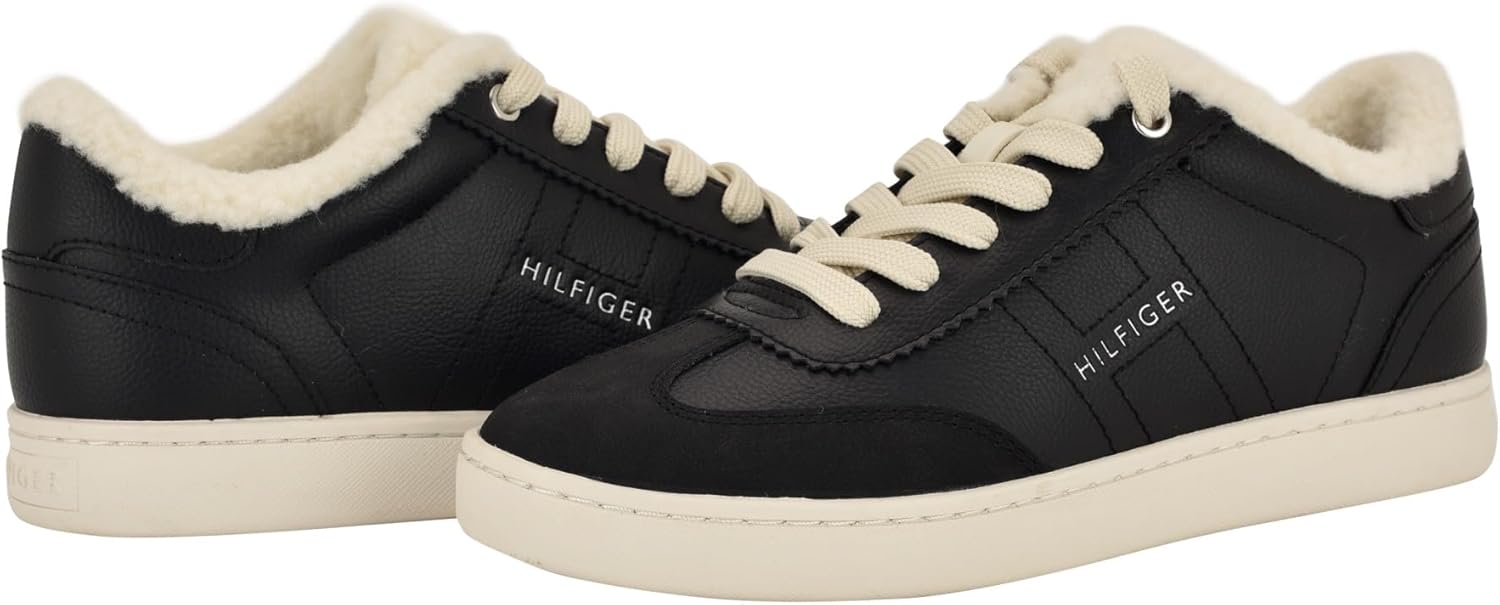 The Tommy Hilfiger Rheign lace up sneaker sports an updated classic look with branded detailing on the side along with a shearling touch. This style is built with comfort and fun for any outfit! Est. 1985, Tommy Hilfiger is a leading lifestyle brand celebrating the essence of American style.