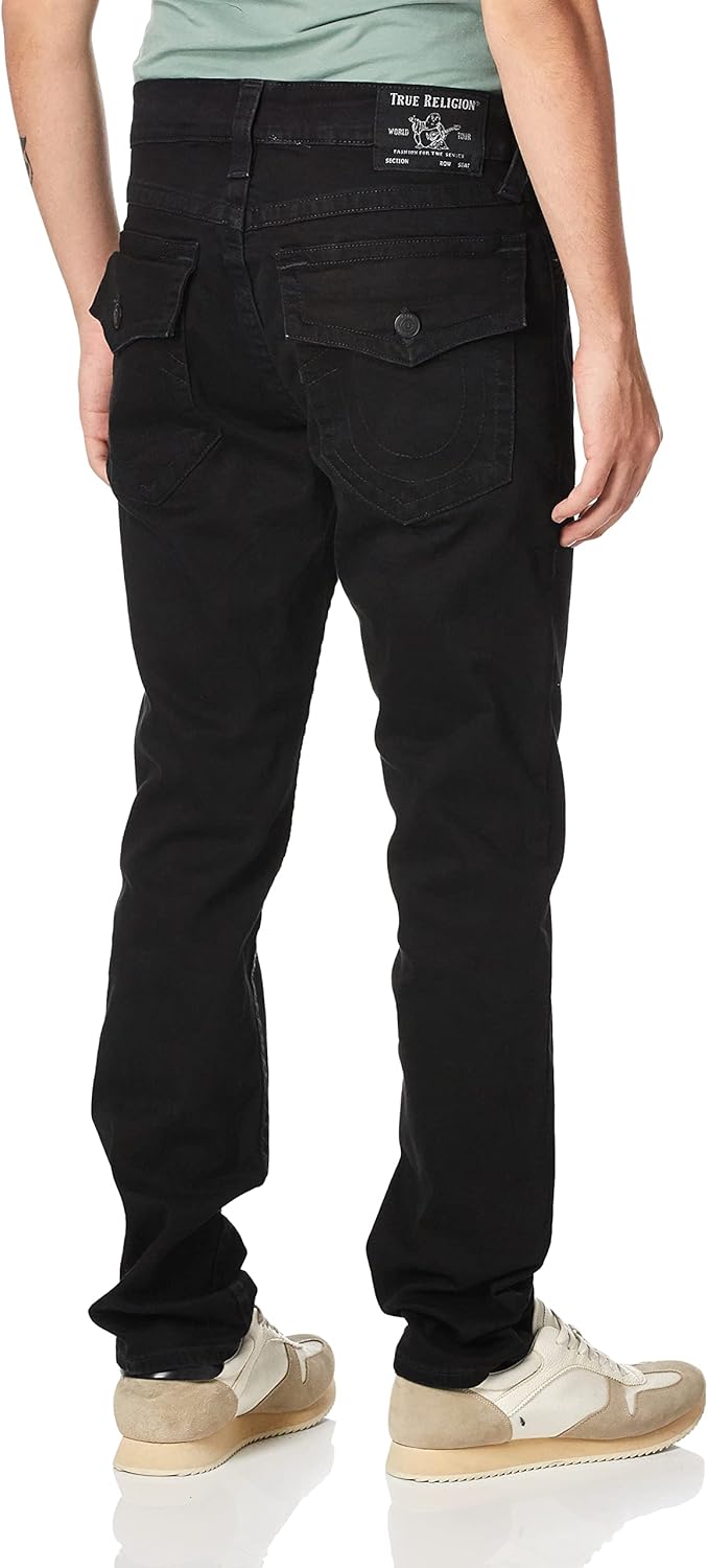 True Religion men's Rocco Skinny fit jean is a super-slim fit with a sleek, modern look and feel. Sits comfortably below the waist, cut skinny from thigh to hem. This style is a classic 5 pocket and features back flap pockets with our signature horseshoe stitching.