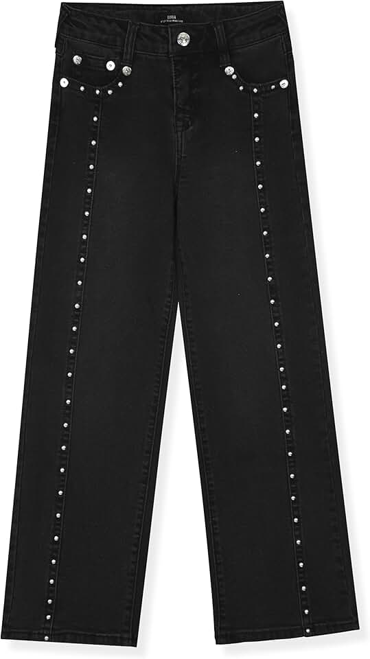 Iconic Designer Girls’ Jeans: Elevate your child’s wardrobe with True Religion Girls Fashion Jeans, featuring stylish designs like wide-leg black jeans with silver studs, light blue cargo jeans with pink chain stitching and patches, and dark blue flared jeans with distressed detailing. Perfect for school, casual outings, or special occasions.
