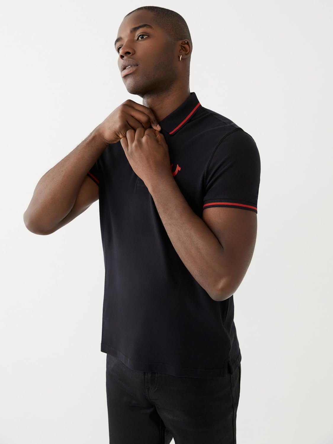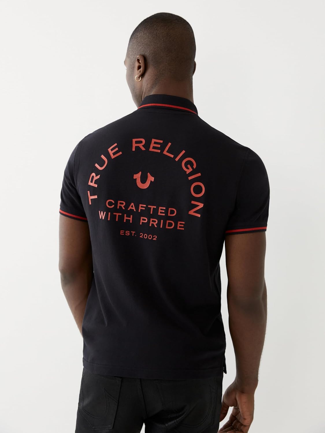 The True Religion Men’s Crafted with Pride Polo blends premium comfort with modern style, making it a must-have in men's polo shirts collections. Designed from soft cotton, this slim fit piece provides breathable comfort while maintaining its structure. A 2-button placket and polo collar give it a polished look, while contrast piping at the collar and sleeves adds standout detail compared to standard mens shirts. Signature elements like the embroidered horseshoe chest logo and “Crafted with Pride” back branding showcase True Religion’s craftsmanship. Perfect for casual weekends, workdays, or evening outings, this versatile option ranks high among polo t shirts for men, offering a reliable mix of durability, comfort, and standout style. Available in multiple colors and sizes, it’s built for everyday wear and lasting appeal among shirts for men.