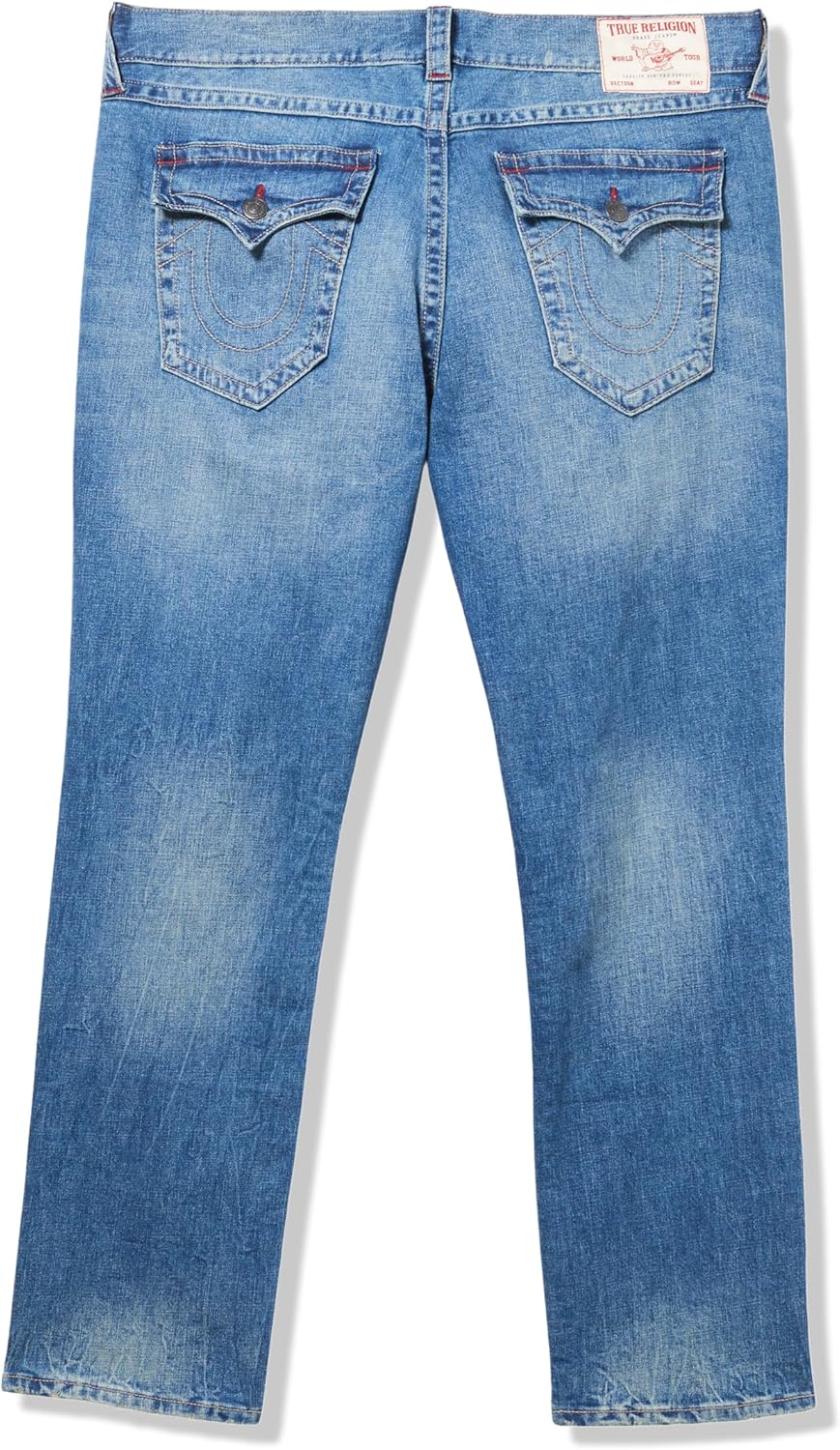 True Religion Men's Geno Single Needle Stitch Flap Jeans. These jeans are crafted from premium quality denim, providing both durability and comfort for everyday wear. The distinctive single needle stitching adds a touch of elegance and refinement, setting these jeans apart from the rest.Featuring a stylish flap pocket design, these jeans offer practical storage and a modern, fashionable edge. The versatile 1/2' inseam makes them suitable for a variety of occasions, whether you're dressing up or keeping it casual.Complete with the authentic True Religion branding, these jeans reflect a commitment to quality and style. Embrace a timeless look with a contemporary twist and make the True Religion Geno jeans a staple in your wardrobe.