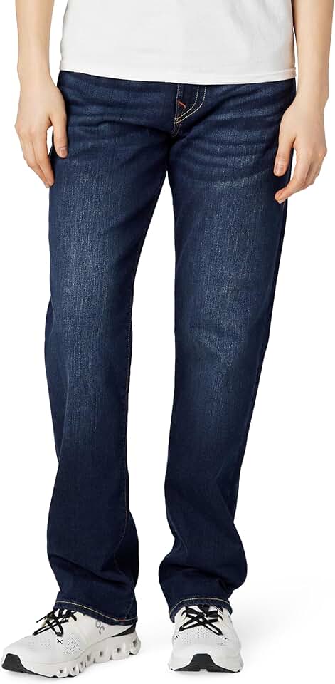 The True Religion Men’s Ricky Straight Leg Jeans with Back Flap Pockets are a timeless staple in mens jeans, combining comfort, durability, and signature style. Featuring a 32' inseam, 14' leg opening, and straight-leg silhouette, they provide a great fit that’s true to size. Crafted from a premium fabric blend of 95% cotton, 3% Elasterell-P, and 2% elastane, these jeans deliver softness, structure, and just the right amount of stretch for everyday comfort. Built with five-pocket styling, zipper fly, and button closure, they are designed for long-lasting wear. The iconic back flap pockets with True Religion’s horseshoe embroidery set them apart from typical regular fit mens jeans, adding distinctive character. Whether you’re after versatile jeans for men that pair with sneakers or polished blue jeans for men to wear with boots, the Ricky Straight Leg is a must-have. Available in multiple washes and all sizes.