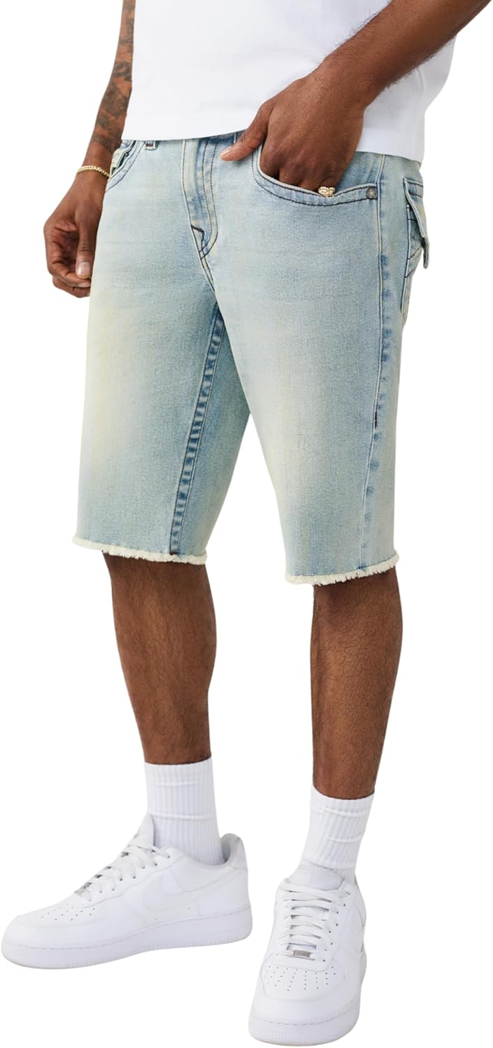 The True Religion Ricky Frayed Hem Denim Short is a must-have for your warm-weather wardrobe. Crafted from a comfortable blend of cotton and polyester, this relaxed-fit short offers a stylish black wash and single needle stitching for durability. A zip fly and belt loops provide a secure fit, while the back flap pockets are adorned with signature horseshoe detailing. The standout feature is the raw-cut frayed hem, adding a trendy, distressed look that perfectly complements the casual vibe of these shorts. Ideal for any laid-back occasion, whether at a summer BBQ or a weekend outing, the Ricky Frayed Hem Denim Short provides the perfect balance of comfort, style, and quality. True Religion’s attention to detail is evident throughout, with the iconic horseshoe embroidery completing the look. Pair with a basic tee or a button-up shirt for a relaxed yet fashion-forward outfit. These shorts are designed to make you feel confident and comfortable while showcasing your unique sense of style.