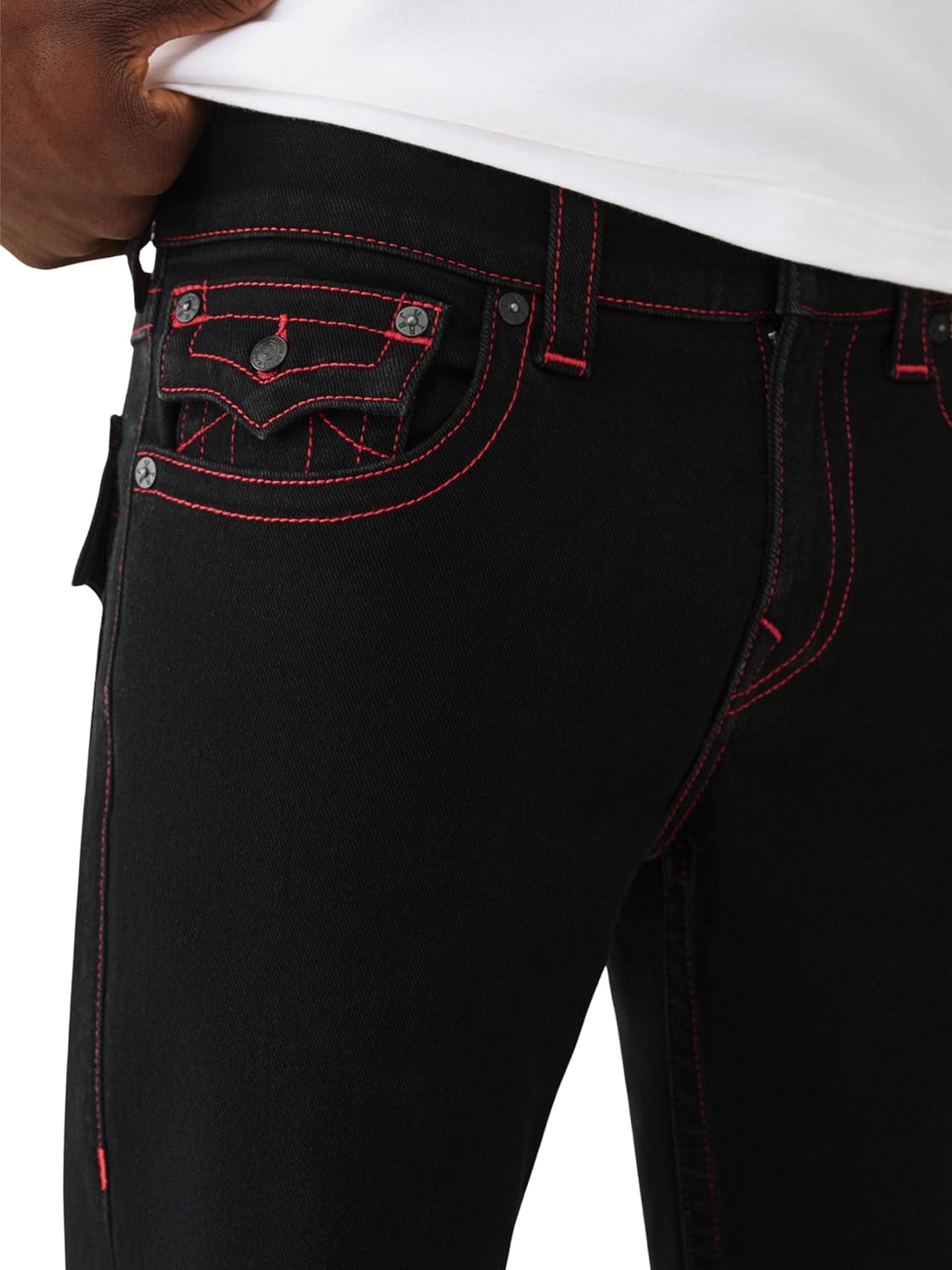 The Ricky Straight Super T Flatlock Jean is a fearless take on a classic fit. Designed for men who know confidence is the best accessory, these straight-leg jeans bring together premium denim, bold detailing, and everyday versatility. Crafted with a durable cotton blend and a touch of stretch, they move with you while keeping their shape. True Religion’s signature Super T contrast stitching and flap back pockets with horseshoe embroidery add rebellious edge to a timeless silhouette. With clean hardware and a 34-inch inseam, the Ricky Super T is built for comfort, durability, and undeniable style. Whether paired with sneakers for a casual day or boots for a night out, these jeans are made for men who never settle for ordinary.