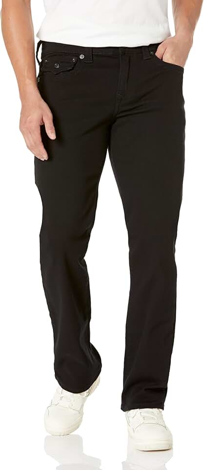 The True Religion Men's Ricky Straight Leg Jean is the original. Cut from a 95% cotton, 3% Elasterell-P, and 2% elastane blend, it delivers the relaxed straight leg fit the Ricky has always been known for, with just enough stretch for all-day comfort. Back flap pockets with horseshoe embroidery, five-pocket styling, and a zipper fly make these mens jeans a timeless wardrobe staple.