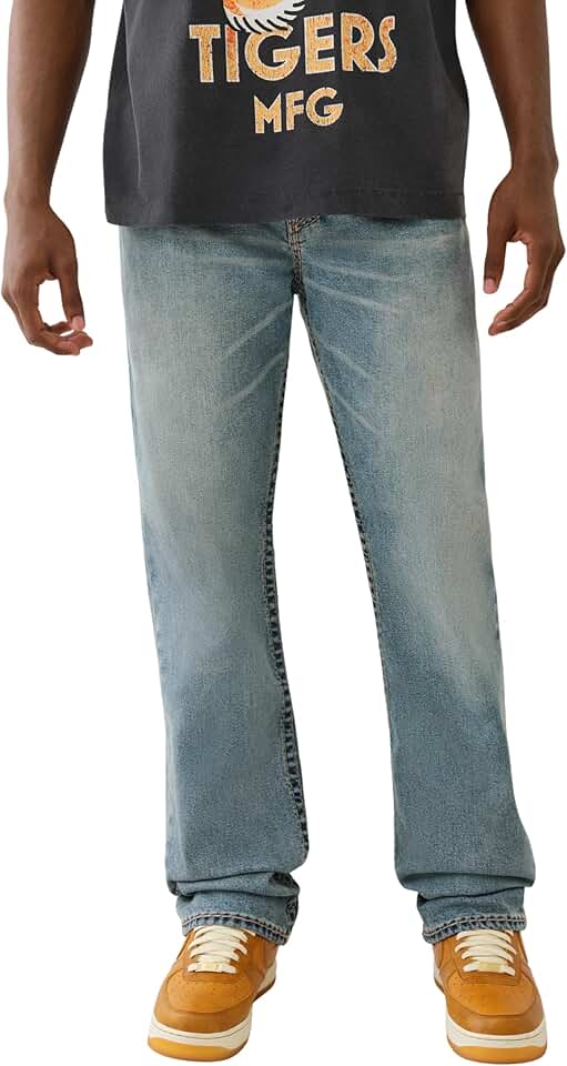 True Religion Ricky Super T Flap Jeans, the ultimate blend of rugged style and signature craftsmanship. These jeans feature a straight-leg fit, bold Super T contrast stitching, and flap back pockets with True Religion’s iconic horseshoe embroidery. Designed for comfort and impact, the premium stretch denim construction ensures all-day wearability while maintaining a standout look. Whether you're going casual or aiming for a streetwear edge, these jeans deliver.Attributes: Brand: True Religion Style Name: Ricky Super T Flap Fit: Straight Leg Inseam: Typically 32–34 inches Rise: Mid Rise Closure: Zip fly with branded button Back Pockets: Flap pockets with horseshoe embroidery Details: Super T oversized contrast stitching, logo hardware Style Type: Streetwear / Premium Denim / Casual Care Instructions: Machine washable