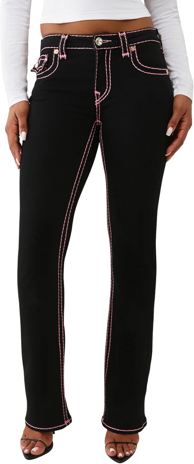 Step into bold denim with the True Religion Becca Boot Flap Big T Mid Rise Bootcut Jeans — a rebellious twist on a timeless fit. Designed for women who embrace individuality, these jeans bring a perfect balance of edge and elegance. Crafted in light wash denim with subtle fading and whiskering, they channel vintage-inspired cool while keeping a modern, fashion-forward silhouette. The mid-rise waist and bootcut leg deliver a flattering fit that complements any style. Pink Big T stitching and signature horseshoe embroidery on the back flap pockets bring True Religion’s iconic DNA, while rose gold hardware adds a luxe touch. Built from premium cotton with stretch for lasting comfort, these jeans are made to move with you. Whether paired with boots or heels, the Becca Boot Flap Jean proves that womens jeans can be bold, fearless, and unapologetically stylish just like you.