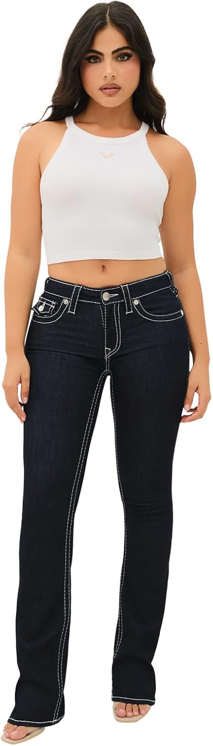 Product Description: Elevate your denim game with the True Religion Becca Mid Rise Bootcut Flap Big T Stitching Jeans for Women in the timeless 'Body Rinse' wash. Crafted from premium denim, these jeans offer both durability and comfort for all-day wear. The classic bootcut silhouette is complemented by a mid-rise waist, ensuring a flattering fit for every body type. True Religion's signature Big T stitching adorns the back pockets, adding a stylish twist to the design. Complete with the brand's iconic flap pockets, these jeans effortlessly blend fashion and function. Whether dressed up or down, these versatile jeans are sure to become a staple in your wardrobe.Bullet Point Classic bootcut silhouette with a mid-rise waist for a flattering fit Signature Big T stitching on back pockets adds a stylish touch Crafted from premium denim for durability and comfort Versatile 'Body Rinse' wash pairs effortlessly with any outfit Features True Religion's iconic flap pockets for a timeless lookDetails: Brand : True Religion Department : Women Accents : Button, Logo, Zipper Style : MID-RISE Fabric Type : Denim Material : Cotton Theme : Designer Pattern : Solid Fit : Regular Type : Jeans Features : Pockets, Stretch Color : Body Rinse Pocket Type : 5-Pocket Design Rise : Mid (8.5-10.5 in) Closure : Zipper Size Type : Regular Fabric Wash : Medium Model: True Religion Becca MR Boot Cut Flap Big T Flap Accents: Button, Embroidered, Logo, Zipper Season: Fall, Spring, Summer, Winter Garment Care: Machine Washable