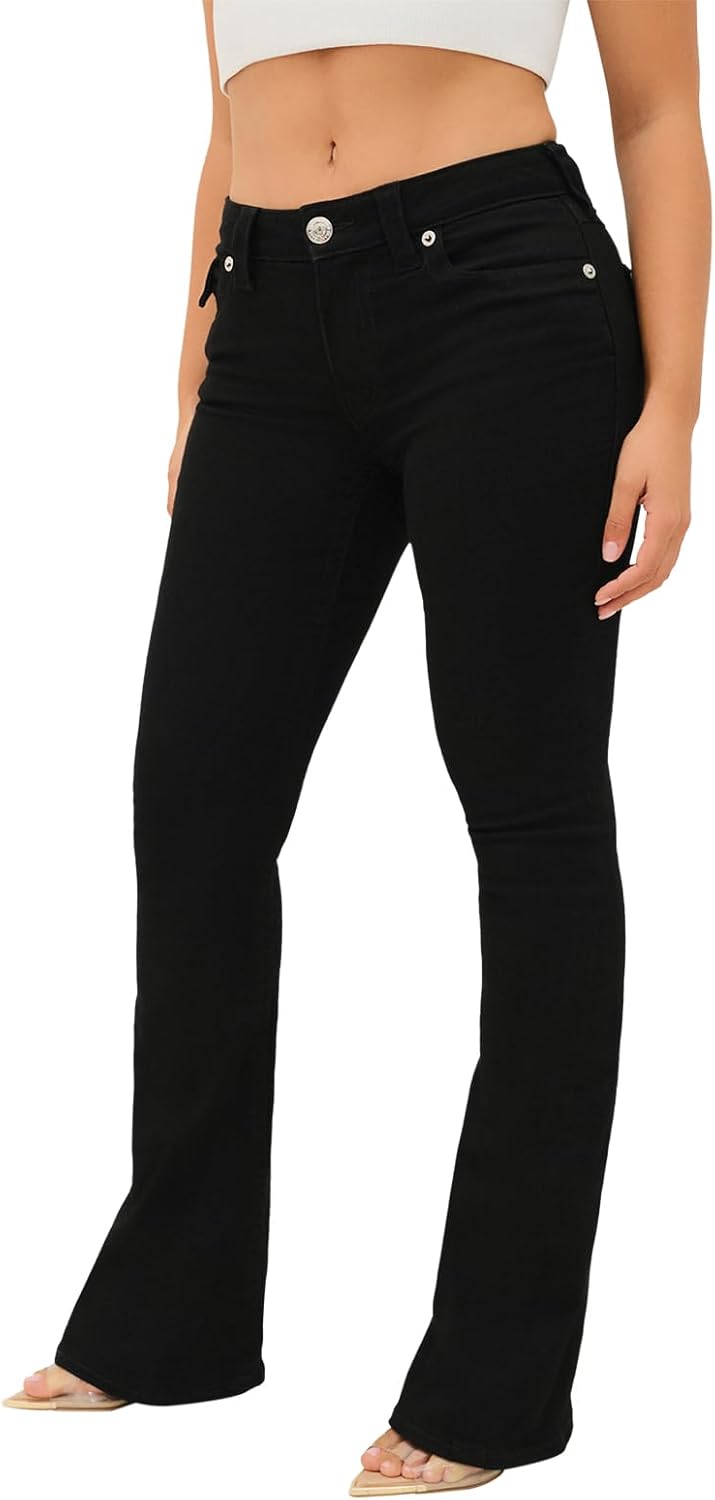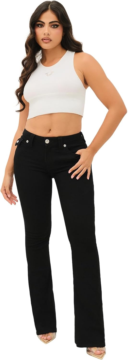 The True Religion Women’s Joey Mid Rise Flare Jean combines classic style with modern comfort. Designed for curvy women, these jeans feature a mid-rise waistband that flatters your waist, while the flare leg adds retro-inspired style and elongates your legs. Made from premium denim, these jeans offer comfort and flexibility for all-day wear. True Religion’s signature Single Needle Stitching ensures long-lasting durability, while the flap pockets and 'U' stitching add distinctive details. Whether you’re dressing up or keeping it casual, the Joey Mid Rise Flare Jean is the perfect addition to any wardrobe. These jeans are ideal for women who appreciate both style and comfort, offering a flattering fit that will quickly become a favorite. Pair them with a simple tee or dress them up for a night out—these jeans are versatile and chic, perfect for any occasion.