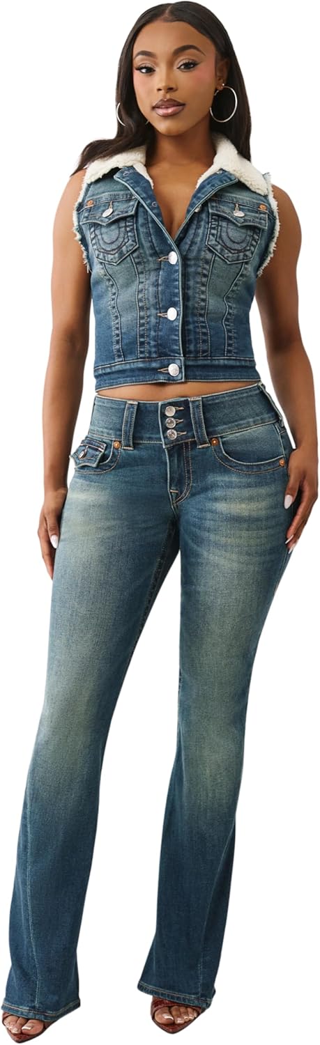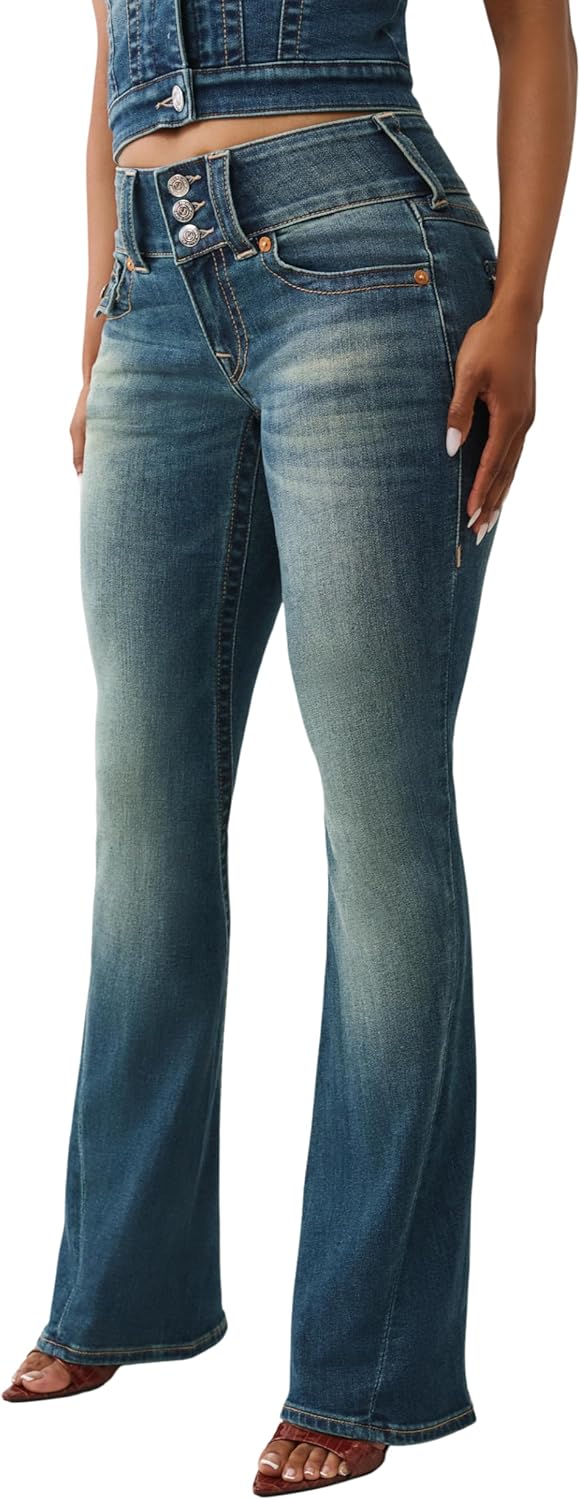 True Religion Y2K Joey Mr Flare Flap Jeans. Featuring a vintage-inspired flare fit, these jeans offer a flattering silhouette with a nostalgic edge. The signature Big T flap back pockets add True Religion’s classic detailing, while premium stretch denim ensures all-day comfort. Perfect for anyone wanting to rock that retro vibe with modern quality and fit.Attributes: Brand: True Religion Style Name: Y2K Joey Mr Flare Fit: Flare Pockets: Signature Big T flap back pockets Closure: Zip fly with button Rise: Mid rise Care: Machine washable