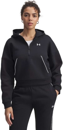 This ½ zip hoodie keeps you warmed up and ready for pretty much everything you do—it's light, comfy, and super-soft on the inside. And features taping details for added style. Ultra-soft cotton-blend fleece with brushed inside for extra warmth. Front kangaroo pocket. Generous ½ Zip front makes for easy layering. Ribbed cuffs & bottom hem. Drop hem shoulder, Color pop piping details. 80% Cotton/20% Polyester