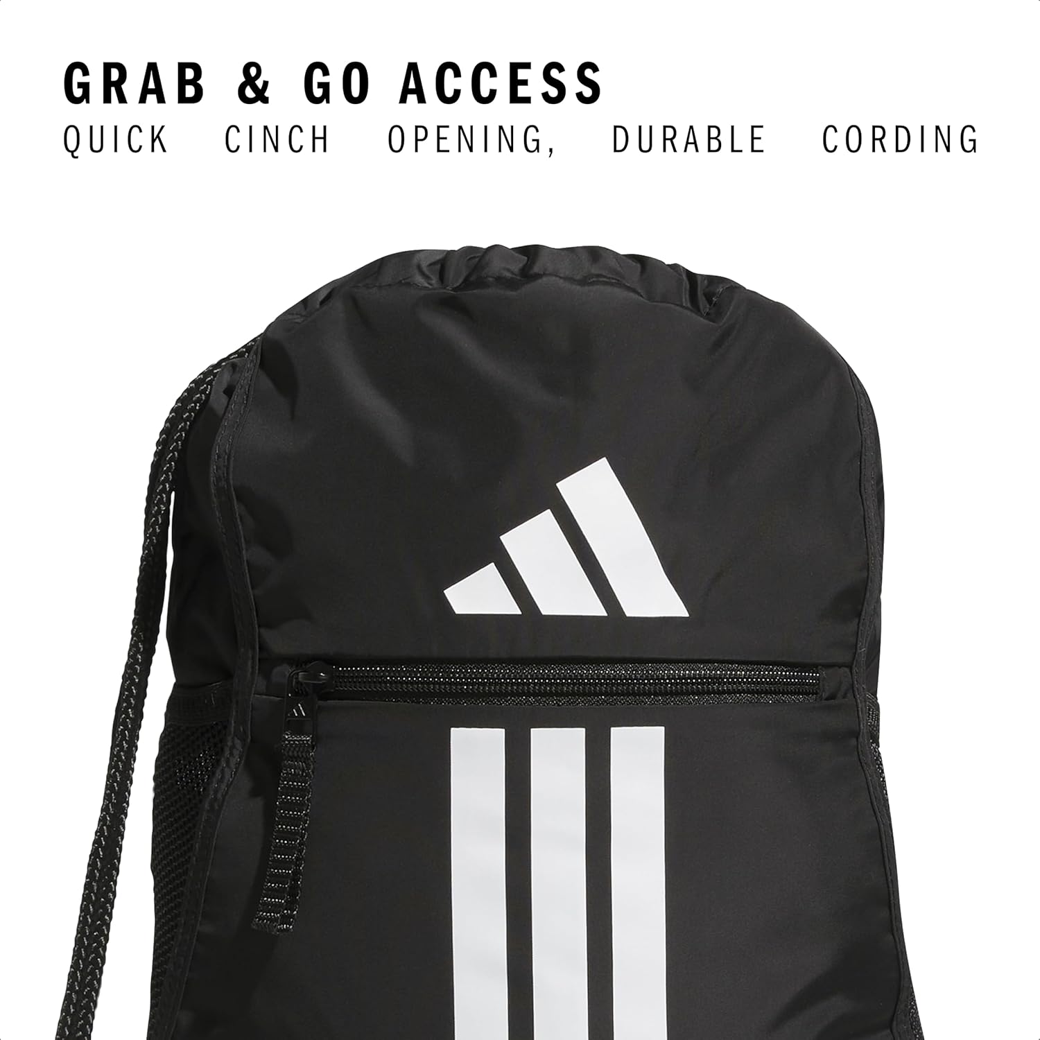 The adidas Alliance Sackpack (12L) is a versatile drawstring backpack designed for athletes and fitness enthusiasts. This lightweight athletic small drawstring bag is perfect as a gym bag or a convenient mini gym bag. Its classic design adapts easily for various uses. Crafted for sports and travel, it serves as an ideal sneaker bag for travel, easily transforming into a sport backpack or a gym drawstring bag. The bag features drop mesh water bottle pockets, making it a reliable sports bag for men and women or a gym bag small for quick trips. The easy cinch opening with durable cording straps allows quick access, while the zippered exterior pocket is perfect for holding your phone or other small essentials. Whether you need a small travel bag, basketball backpack for boys, soccer backpack for girls, or an adidas backpack for men, this string backpack combines functionality and style effortlessly.