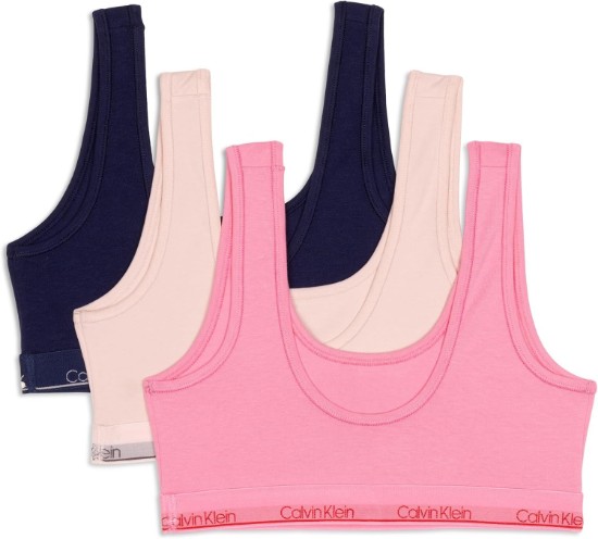 Essential comfort and total support. Calvin Klein girls’ underwear styles include girls’ bralettes, girls’ hipsters, and girls’ bikinis all crafted from cotton and cotton blends for a super comfortable fit. Our girls’ underwear features a range of assorted designs including neutral tones, solid styling, colorful prints, and lace detailing. Classic Calvin Klein repeating logos add an iconic touch along the waist and at the underband. Crafted with stretch, our girls’ underwear styles are made for flexible, easy wear.