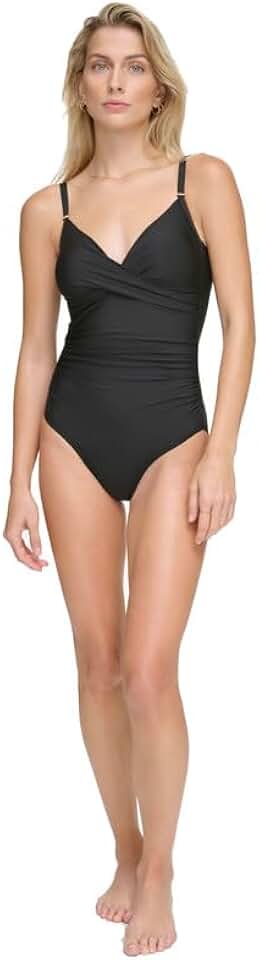 Calvin Klein Women's Twist-Front Tummy-Control One-Piece Swimsuit (Black, 4)