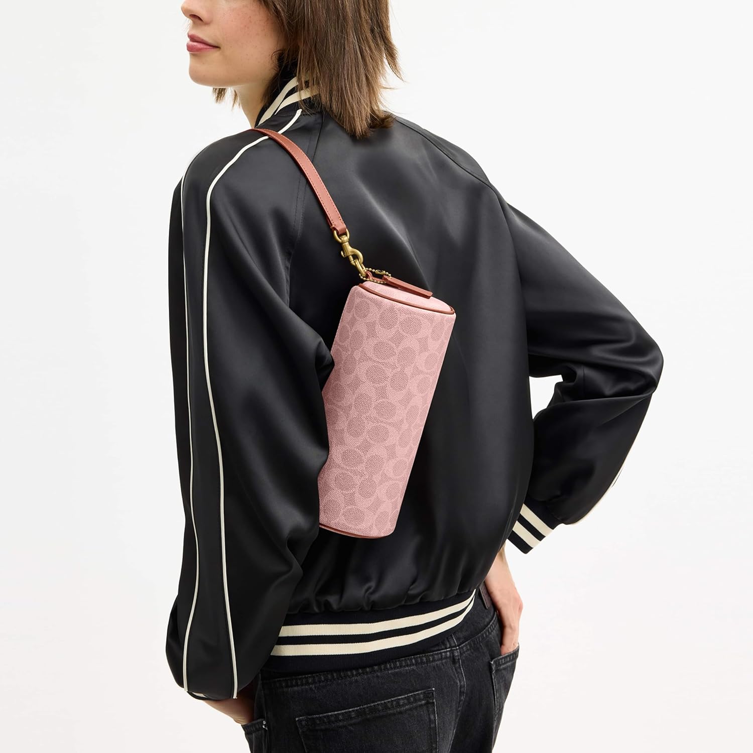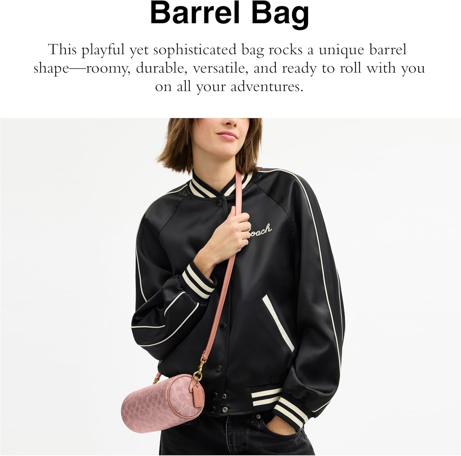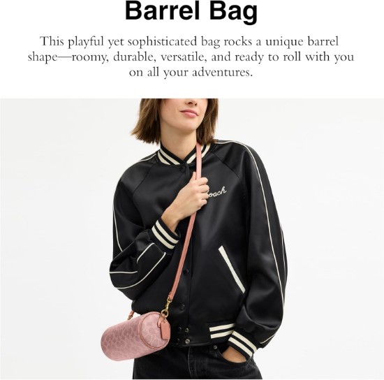 This playful yet sophsiticated bag rocks a unique barrel shape—roomy, durable, versatile, and ready to roll with you on all your adventures. Featuring luxurious natural grain leather, an inside multifunction pocket, zip-top closure, fabric lining, detachable handle with 10 1/2' drop, detachable strap with 21 1/2' drop for shoulder or crossbody wear, 8 3/4' (L) x 4' (H) x 3 1/2' (W).