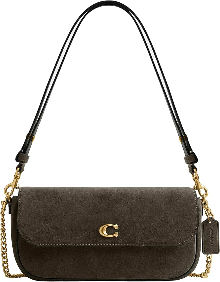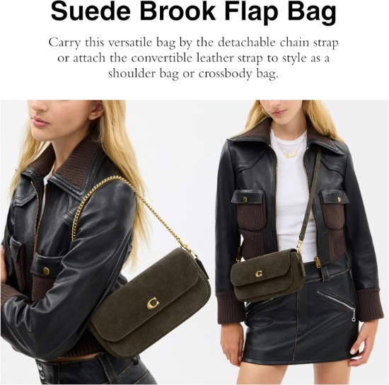 Editor's Notes: A versatile style for day and night, our flap-front Brook bag has a short gleaming chain strap and a convertible leather strap to wear as a crossbody or doubled up for a shorter, dressier look
