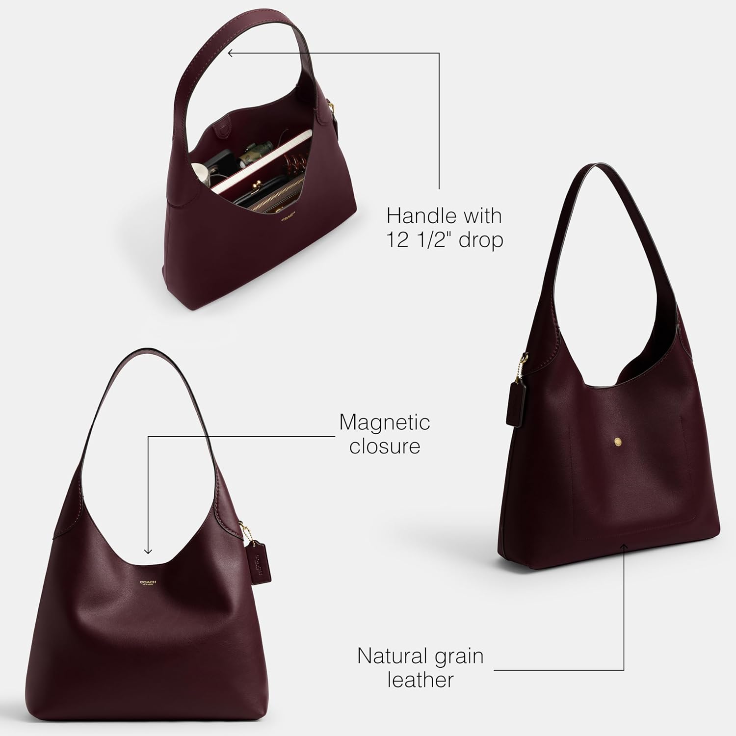 Our Brooklyn is an elegant, minimalist silhouette—with a distinctly New York attitude. This larger shoulder bag is crafted of natural grain leather with beautiful texture and soft feel. Handle with 12 1/2' drop, removable zip pouch, and magnetic snap closure. 13 1/2' (L) x 12 3/4' (H) x 4' (W)