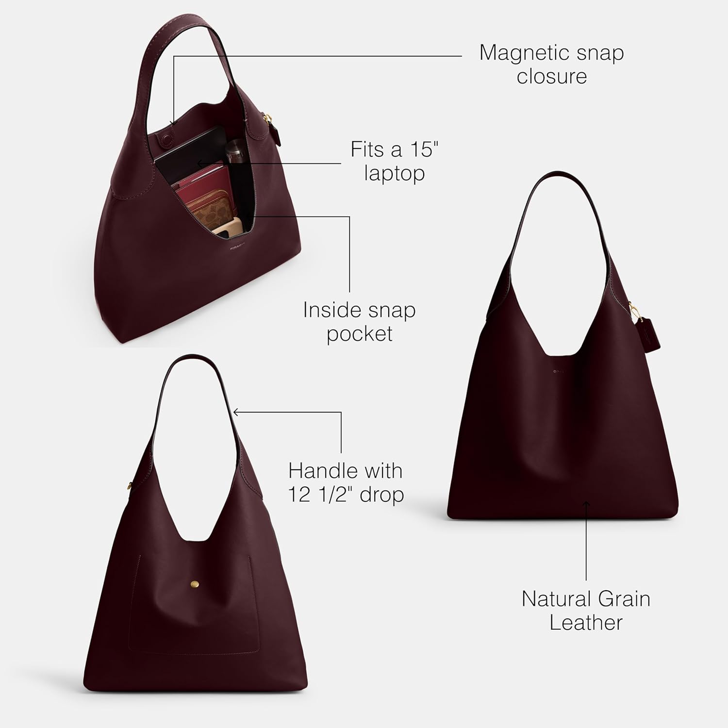 Enhance your elegance carrying the COACH Brooklyn Shoulder Bag 39 - Crafted from luxurious cow leather with a natural grain finish, this chic shoulder bag is a blend of sophistication and functionality. The inside snap pocket ensures your essentials are secure and organized, while the magnetic snap closure provides effortless access. The comfortable handle offers versatility for everyday wear or special occasions.