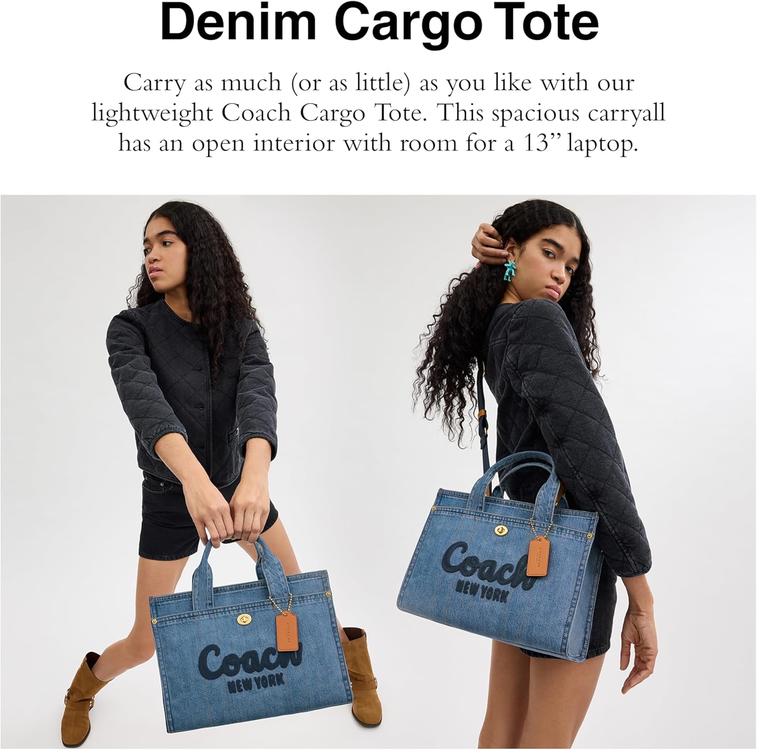 Editors Notes: Carry as much as you like with our lightweight Coach Cargo Tote Bag. Detailed with our iconic turnlock closure, this spacious women's top handle handbag has an open interior with room for a 13” laptop