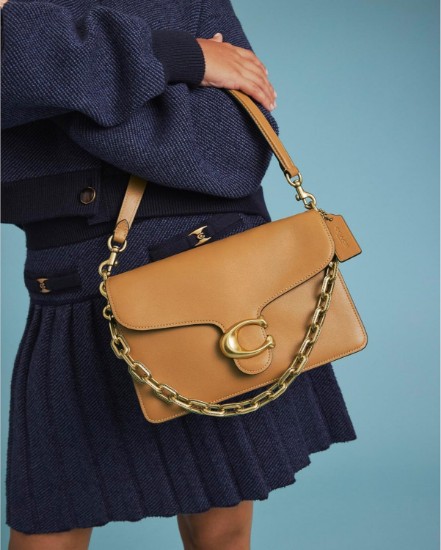 Editor's Notes: A new take on an archival Coach classic, the Soft Grain Chain Tabby is designed for elegance with a sophisticated chain strap. Carry this stylish shoulder bag by its chain, or let it hang as a decorative accent