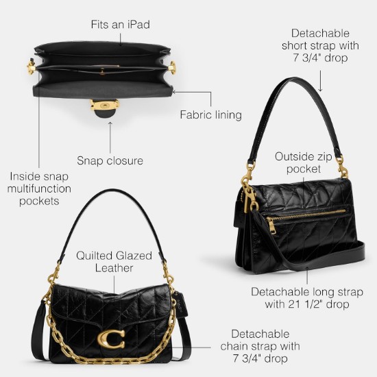 Editor's Notes: A modern take on an archival 1970s Coach design, this structured bag is crafted of quilted plush, elegant glazed leather and features our Signature hardware for an iconic touch, a snap closure and multifunction pockets for easy access to essentials
