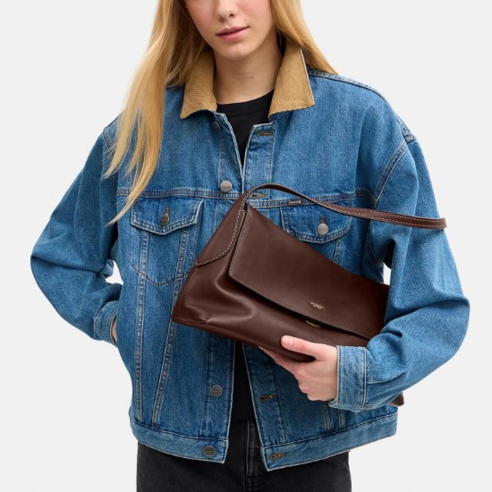 Clean lines and an elegant shape with a discreet pushlock closure make this Chelsea shoulder bag a stylish go-to for everyday life. Featuring a spacious interior with a zip pocket for access to essentials, this streamlined women's shoulder bag is crafted with luxurious suede and soft nappa grain leather, suede lining and a comfortable shoulder strap with 9 1/2' drop. Measures 14 1/4' (L) x 7 3/4' (H) x 5 1/2' (W).