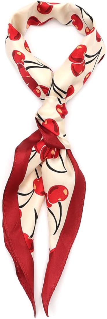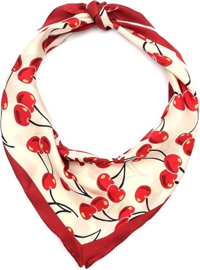 EDITOR'S NOTES: This silk diamond scarf features a cheerful cherry print and our Coach Badge. Knot it around your neck for a pop of pattern.