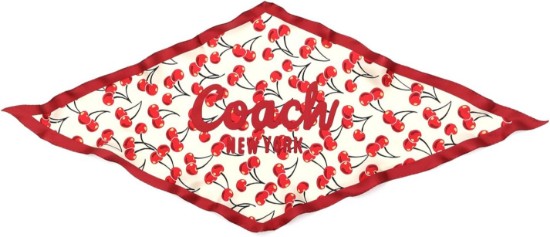This silk diamond scarf features a cheerful cherry print and our Coach Badge. Knot it around your neck for a pop of pattern.
