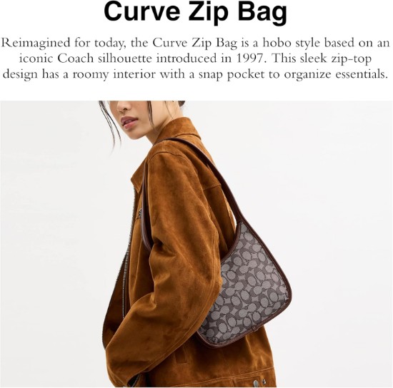 The Curve Zip Bag is part of The Coach Originals, a collection of archival-inspired bags that celebrates our legacy and authentic New York heritage. Reimagined for today, this hobo style is based on an iconic Coach silhouette introduced in 1997. The sleek zip-top design has a roomy interior with a snap pocket to organize essentials. Crafted of our buttery soft glovetanned leather, it features a wide strap that sits comfortably on your shoulder. Some styles are just too good to leave in the archives. Glovetanned leather, fabric lining, inside snap pocket, zip-top closure, handle with 12 1/2' drop, 9 1/4' (L) x 9 1/4' (H) x 2'(W)