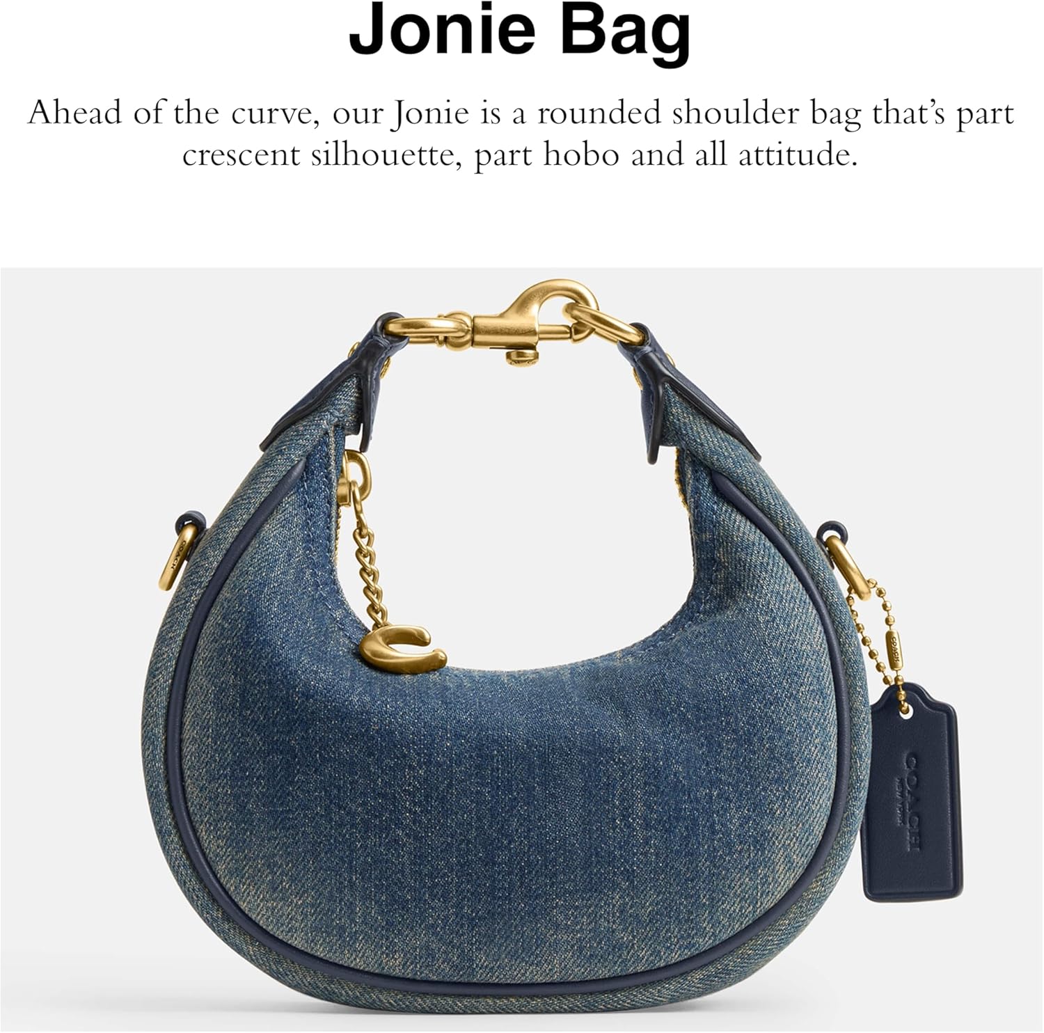 Ahead of the curve, our Jonie is a rounded shoulder bag that’s part crescent silhouette, part hobo and all attitude. Carry by hand and wear as a wristlet with the interlocking top handle for nights out or add the detachable leather crossbody strap for days on the go. Zip-top closure, fabric lining, handle with 2 3/4' drop, detachable strap with 21 1/2' drop for shoulder or crossbody wear, 6' (L) x 6 3/4' (H) x 2 1/4' (W).