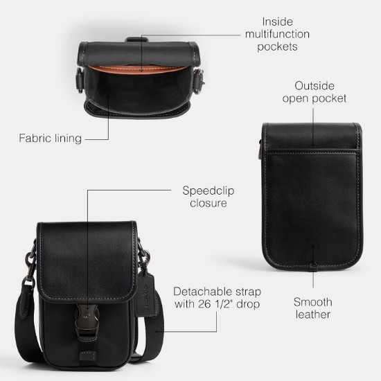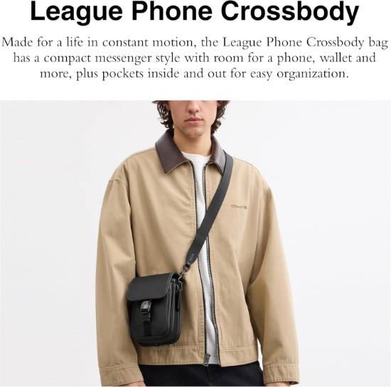Made for a life in constant motion, the League Phone Crossbody keeps your game plan on track. Smooth leather, inside multifunction pockets, speedclip closure, fabric lining, outside open pocket, detachable strap with 26 1/2' drop for shoulder or crossbody wear, 4 1/4' (L) x 7 1/2' (H) x 2' (W)