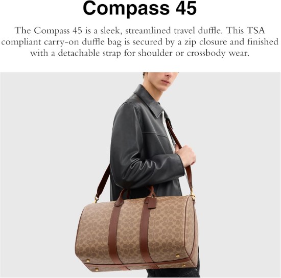 Editor's Notes: The Compass 45 is a sleek, streamlined travel duffle. This no-fuss, generously-sized carry-on bag is secured by a zip closure and finished with a detachable strap for shoulder or crossbody wear