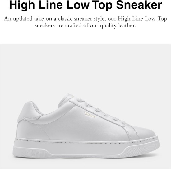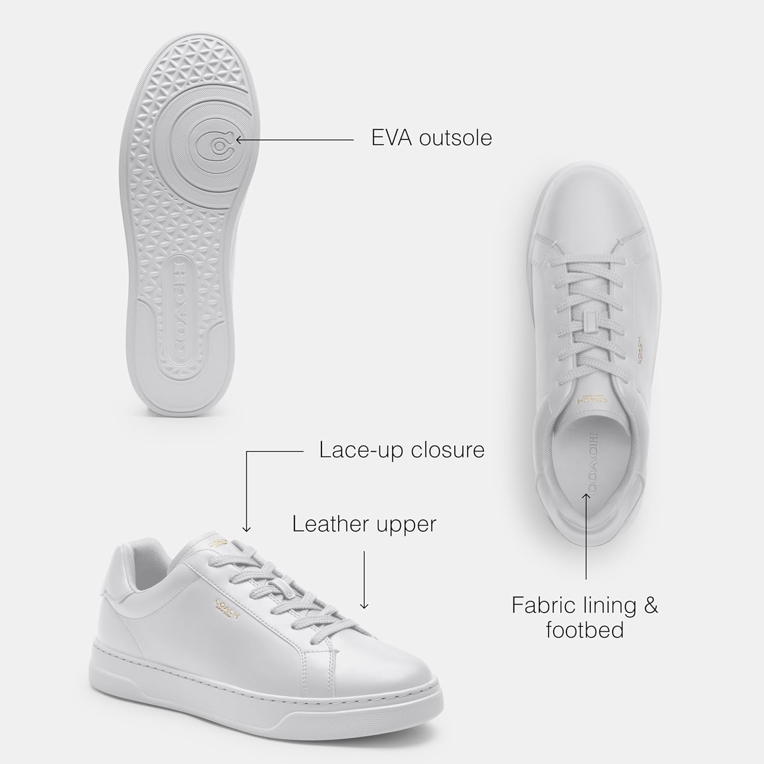 Perfect to pair with your casual looks and outfits, the COACH High Line Sneakers are made of a leather upper that makes them a durable choice. Their lace-up closure ensures a secure fit. These leather sneakers are made of an EVA insole and polyester