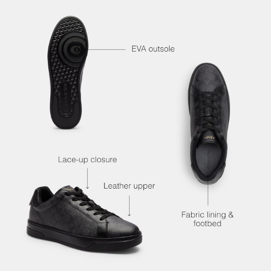 Made of a signature coated canvas and leather upper, the COACH High Line Sneaker In Signature Canvas makes a stylish addition to your footwear collection. Their lace-up closure offers a secure fit. These leather sneakers are designed with an EVA inso