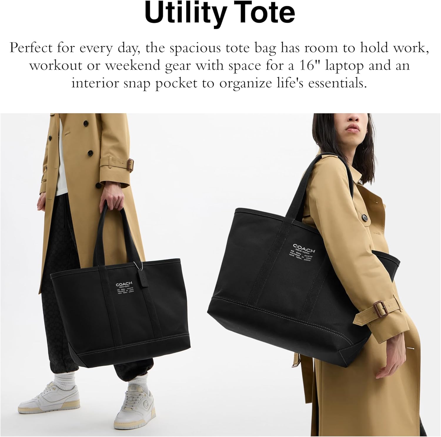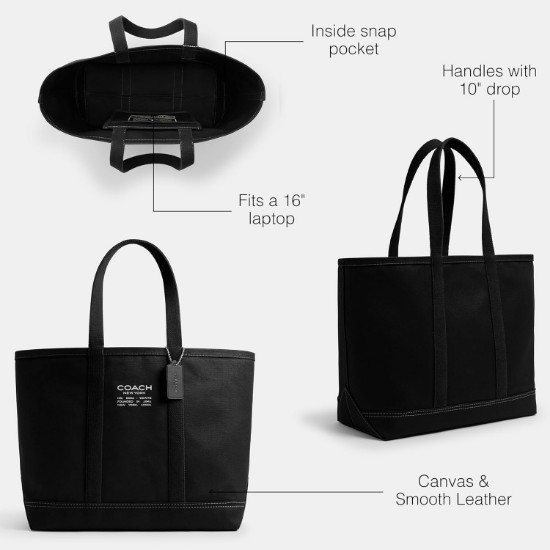 Crafted of durable canvas, smooth leather and grosgrain, this spacious bag is built to go wherever the day takes you - carry as a day tote or weekender bag - fits a 16' laptop. Featuring an inside snap pocket and handles with 10' drop, 16 1/4' (L) x 14 1/4' (H) x 7 3/4' (W)