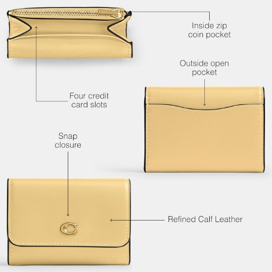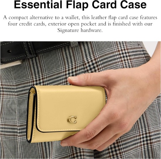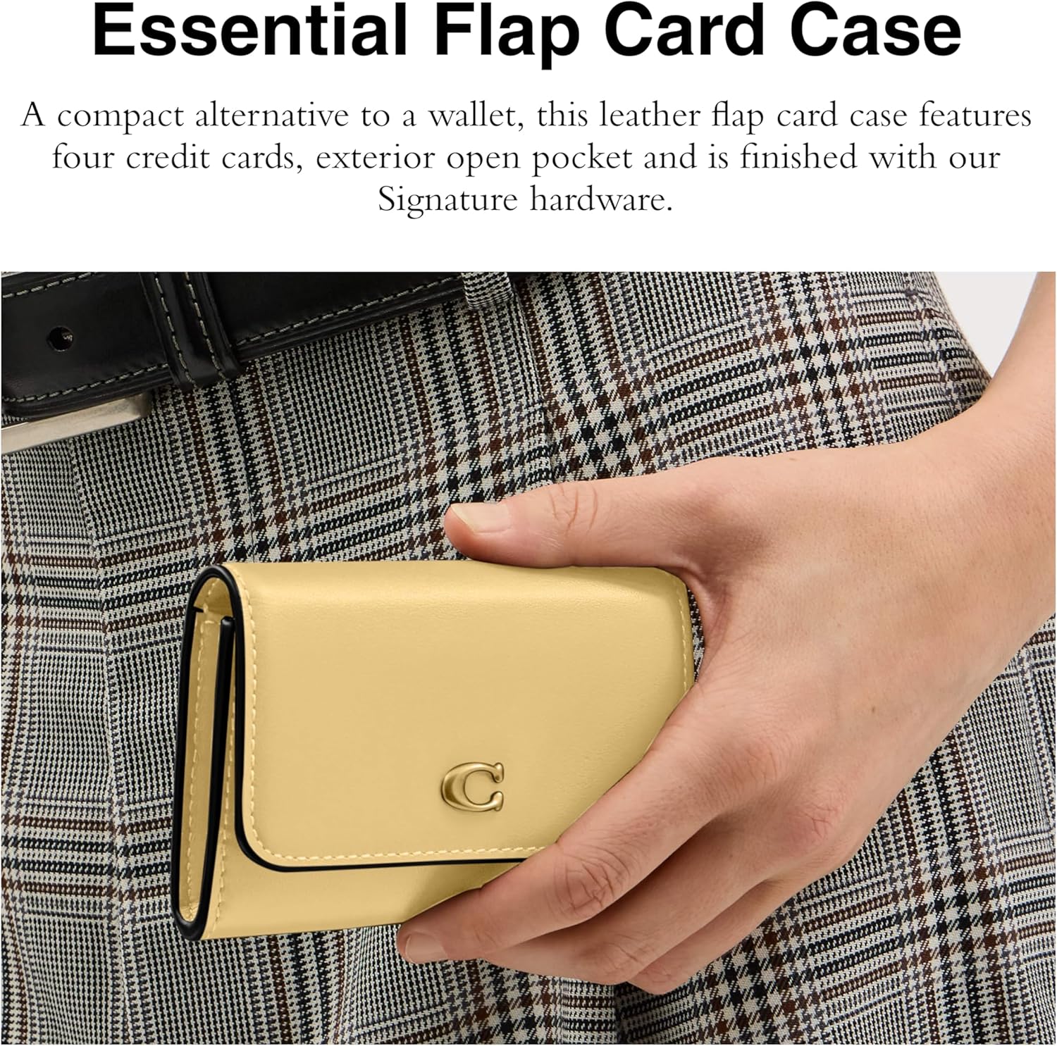 Our Essential Flap Card Case wallet is crafted of refined calf leather and features 4 credit card slots, an outside open pocket a snap closure. Finished with our Signature hardware, this compact womens wallet holds cards, cash, ID and earbuds with an outside open pocket for easy access to essentials.