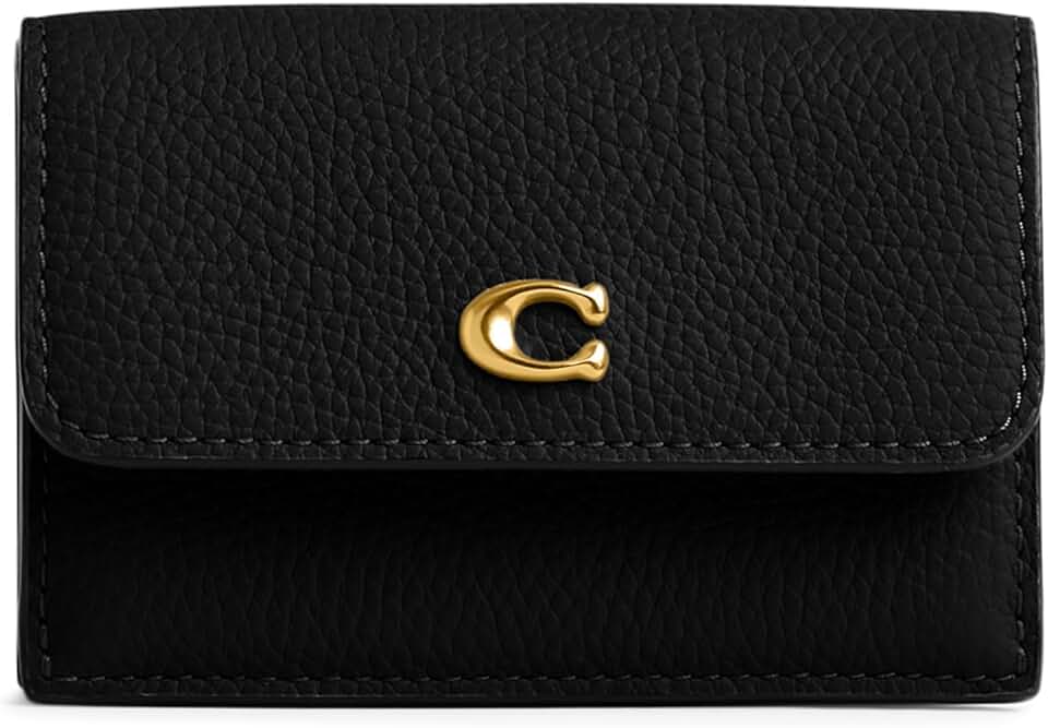 COACH Polished Pebble Leather Essential Mini Trifold Wallet Black One Size