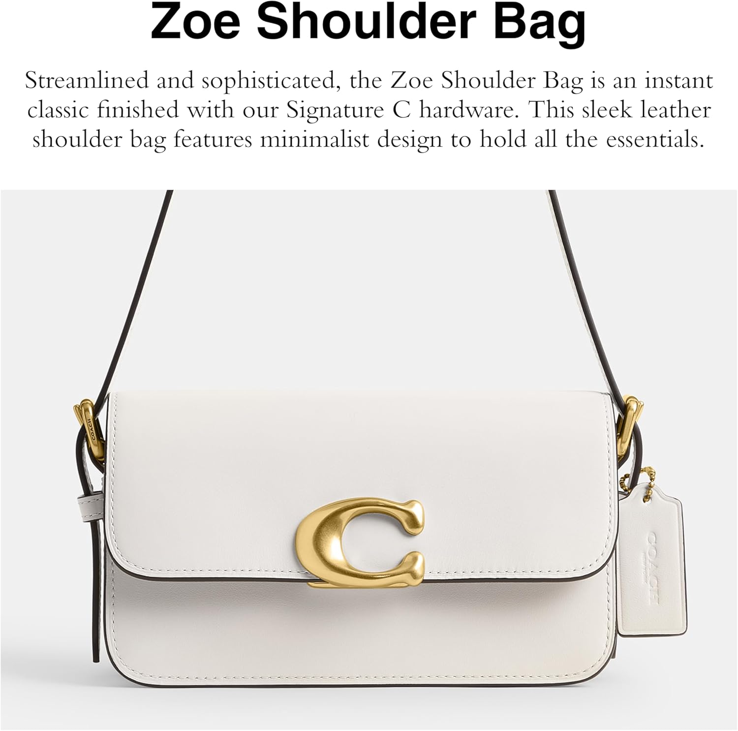 Streamlined and sophisticated, the Zoe Shoulder Bag is an instant classic crafted of refined calf leather and finished with our Signature C hardware. Refined calf leather