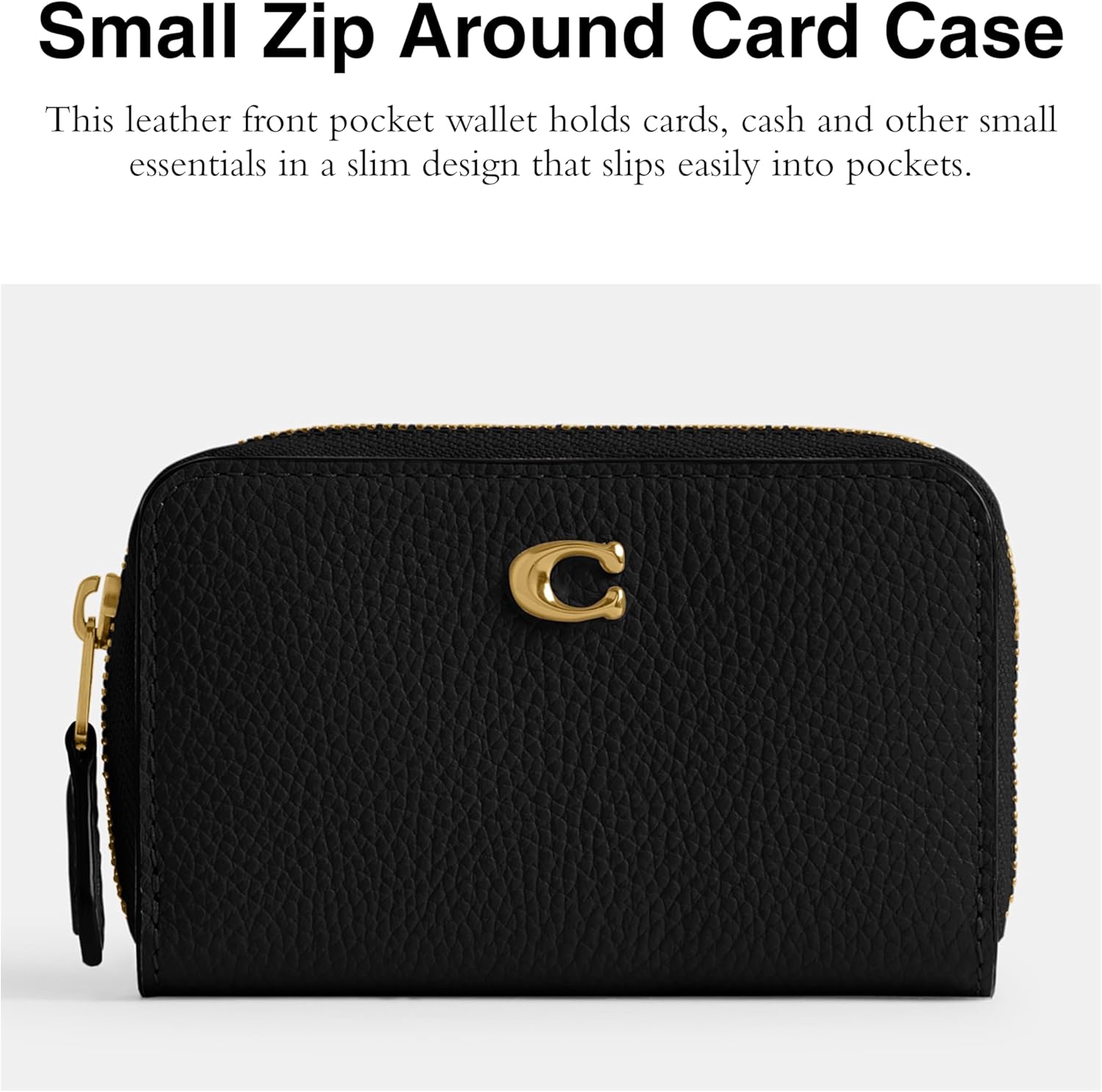 Crafted of polished pebble leather, the accordion gusseted design of this card case secures with a zip-around closure. This leather front pocket wallet holds cards, cash and other small essentials in a slim design that slips easily into pockets.
